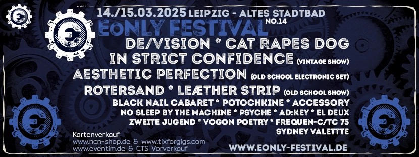 Nem tudod, hogy hol töltsd el a március 15-i hétvégét? Nekünk van egy tippünk. 14. alkalommal rendezik meg a lipcsei Altes Stadtbad-ban az E-Only fesztivált. A két napos rendezvényen olyan szuper együtteseket láthattok, mint Aesthetic Perfection, De/Vision, In Strict Confidence, Cat Rapes Dog, Rotersand, Leather Strip, Ad:Key, Zweite Jugend, Accessory, Psyche, Black Nails Cabaret, Potochkine, Sydney Valette, csak hogy a nagyobbakat említsük. A két színpad beosztását annyira jól megszervezték, hogy nincsenek átfedések, aki szeretné az összes bandát meg tudja nézni. A koncertek után pedig az afterpartikon folytatódik majd az ereszdelahajam.