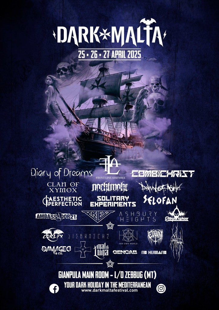 A Dark Malta Málta egyetlen gothic/indusztriál/metál eseménye, ami nagy népszerűségnek örvend azon látogatók körében is, akik a fesztivált egy mediterrán nyaralással kötik össze egy olyan országban, amely történelméről és meleg éghajlatáról híres. Az ötlet azután született, hogy DJ Hades és Aleera De Lune, a fesztivál szervezői kitalálták Málta első gótikus fesztiváljának megszervezését. A helyszín a Gianpula Village főterme, ami régen egy egyszerű parasztház volt, mára már Málta legnagyobb és legjobb szabadtéri éjszakai klubjává alakult, amely egész évben a sziget legmenőbb rendezvényeinek ad otthont. A gyönyörű kertekkel körülvett klub hét bárral, korszerű hang- és világítási rendszerrel, exkluzív VIP részleggel rendelkezik. Egy kifinomult szabadtéri szórakozóhely dzsungelszerű környezetben, amely összeköti a tömeget a zenével. Ha pálmafák közt a medencében szeretnétek fesztiválozni, ez nektek való lesz. Remek hely, ahol megtapasztalhatjátok a gyönyörű nyári naplementéket, miközben a legmenőbb zeneszámokra táncoltok és élvezhetitek a sziget gyönyörű tájára nyíló csodaszép kilátást is. A fesztivál első kiadása 2018-ban egynapos eseményként került megrendezésre, 2019-ben a fesztivál 2 napos lett, 2022-ben pedig már 3 napossá nőtte ki magát. 2023-ban volt a valaha volt legmenőbb rendezvény, ugyanis először volt medencepartival egybekötve. Szintén közkívánatra rendezték meg hozzá a Művészeti Kiállítást és szombaton az afterpartit is. Idén április utolsó hétvégéjén pedig a 6. évfordulóját ünnepli számos dj-vel és olyan nagyszerű bandákkal, mint a Front Line Assembly, Diary of Dreams, Combichrist, Solitary Experiments, Clan of Xymox, Nachtmahr, Aesthetic Perfection, Priest, Ashbury Heights, Liebknecht, Synthattack, Ambassador 21, Her Own World, Selofan, GenCab, Stars Crusaders, EGGVN, csak hogy a nagyobbakat említsük.