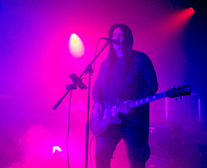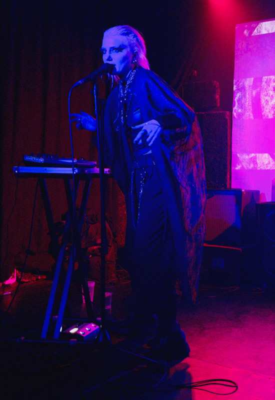 Nagyjából negyedóra késéssel kezdett a 2022-ben alakult Barking Babies. A fények nagyon rosszak voltak, szinte teljesen sötét volt a színpad, alig látszódtak a zenészek. Nem tudom, hogy a banda kérte-e így, mert azért valljuk be, bájosan amatőrök voltak, a gitáros csajszi végig a húrokat nézte és nagyon koncentrált. A trió olyan letargikus nótákat játszott, amiket a hideg fuvallatok és a melankólia uralt. Ha jól számoltam, egy kivételével az összes új dalukat megmutatták a darkwave közönségnek, az énekes elmondta, hogy egy hete jelent meg az új lemezük. Szerettek volna „Sorrow” kislemezt is, de nem csinálták végül meg. Beharangozták a következő „Witch” hiperslágert, ivott egy gyorsat az énekes srác, addig kérte, hogy Dani szintis beszéljen, de ő inkább csak integetett és nevetve mondta, hogy nem tudja eljátszani ezt a dalt. Nagy hujjogatást kapott az együttes, a teljes baráti kör ott volt, ez biztosan jól esett nekik.