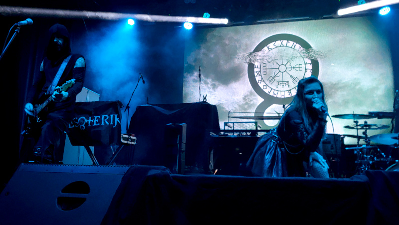 Pontosan lépett színpadra a nyitóbanda, az amerikai Esoterik. Nem volt könnyű dolga az oklahomai duónak, nagyon kevesen voltunk ott a korai kezdésre, viszont a dinamikus énekesnő szerintem abszolút jól megoldotta a helyzetet, kommunikált a jelenlévőkkel, énekhangja is, -ami a tiszta éneklés és a kemény vokál közt mozgott- bemutatta kiterjedt hangterjedelmét és a benne rejlő hihetetlen energiát.