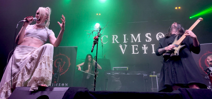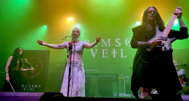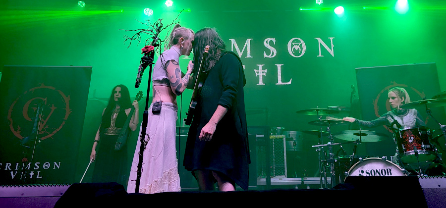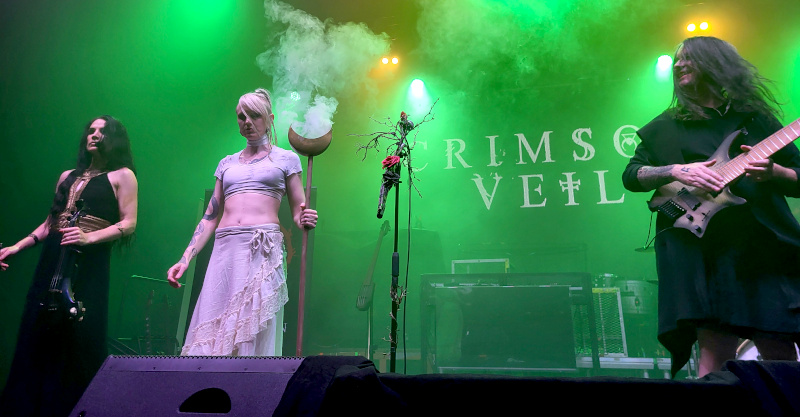 Rövid átszerelés után kezdett is a Chrimson Veil. Ez a három brightoni hölgyből és egy úriemberből álló kollektíva eredetileg 2008-ban jött létre Birdeatsbaby néven. Aztán változott a felállás, az alapító tagokhoz, Mishkin Fitzgeraldhoz és Gary Mitchellhez tavaly Hana Maria és Anna Mylee csatlakozott. Az angol banda több műfajt is bejárt, miközben megőrizték jellegzetes sötét és töprengő alternatív metál hangzásukat.