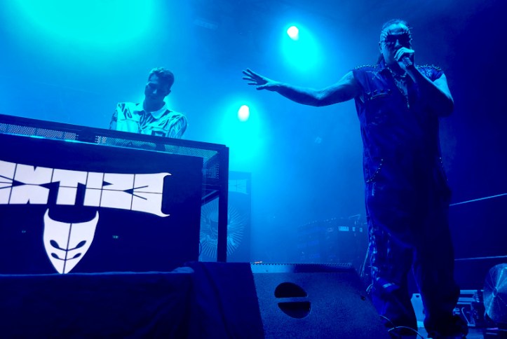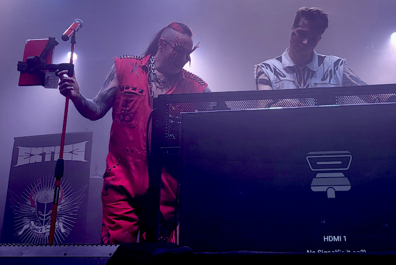 Nagyon vártam a francia/német elektró-indusztriál Extize koncertjét. A frontember, Rapha Hell egyedi víziójából született projekt 2007-ben robbant be a zenei szcénába. Eredetileg a világ első cybergót bandájaként alapították, de hangzásuk folyamatosan fejlődött, ami egy saját műfaj létrehozásához vezetett: a Dirt-E-Tronic-hoz, ahol az elektró, az indusztriál és a gót elemek keverednek. Mindegyik szám egy adott zenei korszak esszenciáját egyesítette a banda jellegzetes elektró-indusztriális hangzásával, a dj pult elé rögzített monitoron pedig a dalok klipjei futottak.
