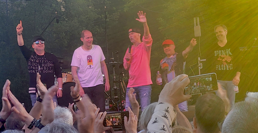 A rövid felkonferálás és az intró után máris belecsaptak az „Időgép“-be és az „Amerika“-ba, majd Kiki kihozott egy bécsi zsömlét, odadobta egy rajongónak és jött is az „A La Carte“. Megtudtuk, hogy hamarosan itt van a nyári napforduló, így nem is következhetett más, mint a „Szentivánéji Álom“. Mivel most nem volt kivetítő, Kele vicceskedett is, hogy a közönség így nézhet 5 szépfiút, erre az énekes rákontrázott, hogy maximum a szomszédos strandon és akkor az éjszakai fürdőzés előtt jöjjön a hölgyeknek egy „Angyali Vallomás“, majd az elvágyódást szimbolizáló „Valahová, Valakivel“. A 44 éve élőben játszó zenekarnak volt régen egy remek szövegírója, Geszti Péter, aki olyan szuper dalnak írta a szövegét, mint a „Kutyavilág“, vagy a Berkes Gabi által megénekelt „Sorsvonat“.