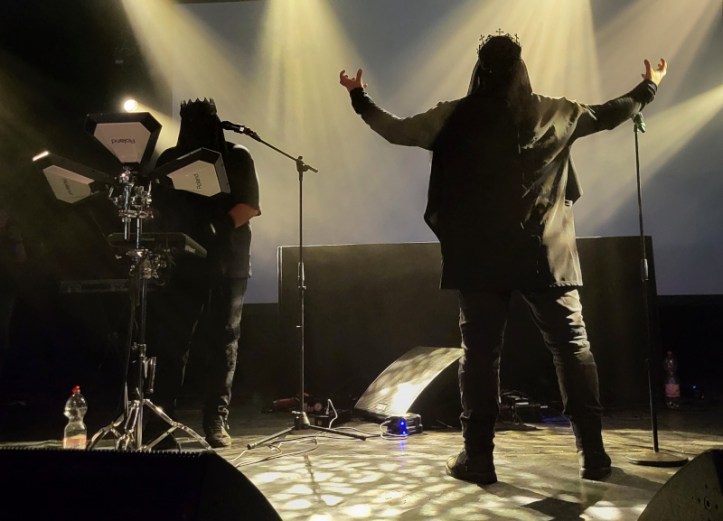 Amikor a phoenixi Kreign két tagja fekete lepelbe burkolózva és koronával a fejükön megjelent a színpadon, tudtuk, hogy ez bizony rituálé lesz a nyers ritmusokkal és a kántálásszerű énekléssel.