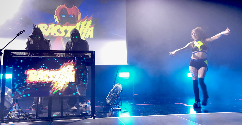 Rohanás át a Haus Leipzig-ba, ahol az elektró-mocsarak mélyéről feltámadt szörnyeteg, Basszilla számított a színpad előtt táncoló cyberpunk, death elektró, nu rave és a hard indusztriál techno szerelmeseire. Az Extize frontembere által készített projekt először 2014-ben lepte el a klubokat és okozott rendkívüli elektró-rengéseket. Jó hangulatú koncertet csináltak, a csinos táncosnők a „Basszilla’s Bitches” közben, a dinoszaurusz a „Bass Monster” alatt táncra perdítették az őrült módjára bulizó tömeget. Senki sem menekülhetett a basszusszörnyeteg elől és aki szereti az elektronikus hangzásokat, az biztosan nem is akart szabadulni a karmai közül és a mély dübörgéseitől.