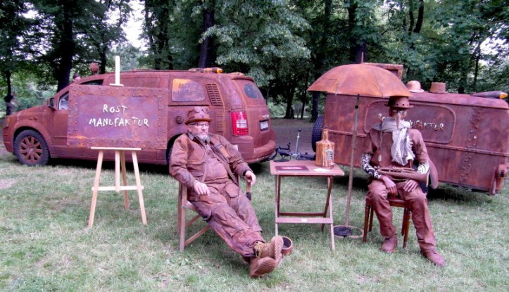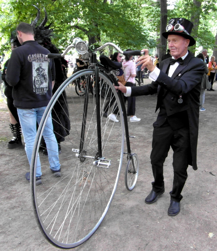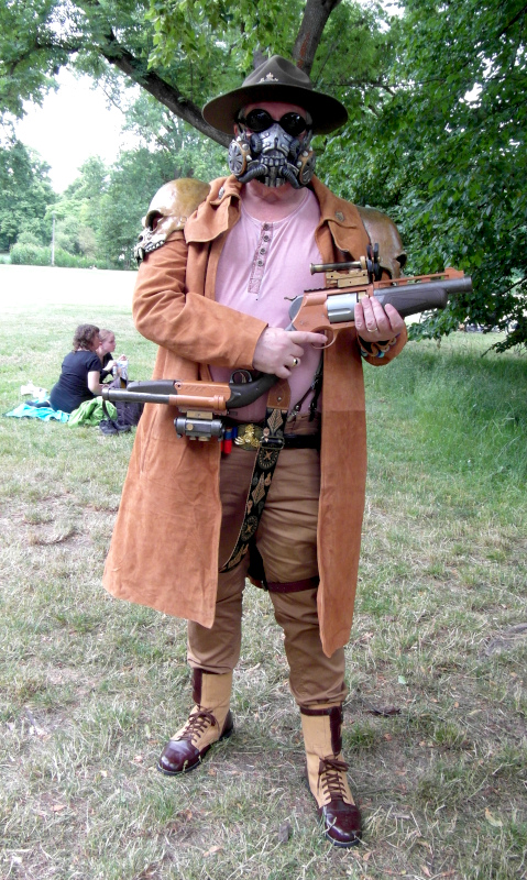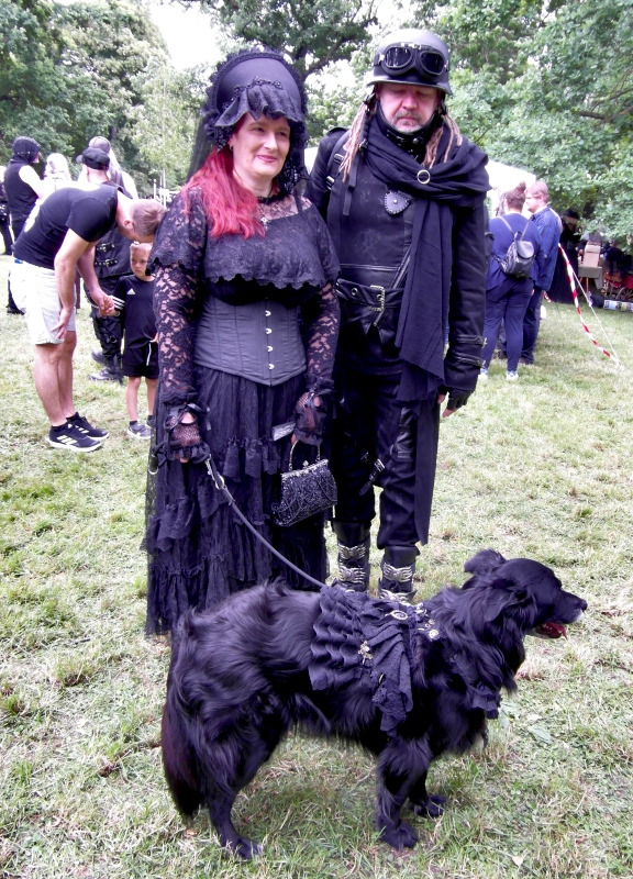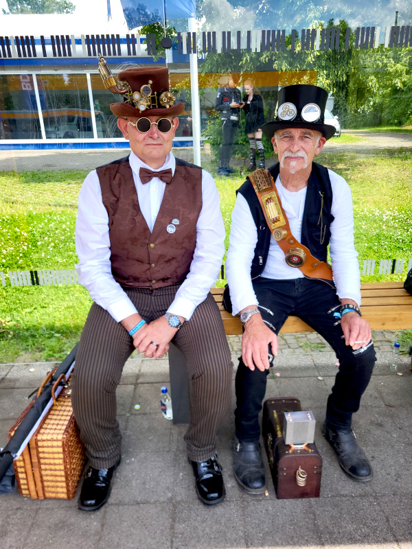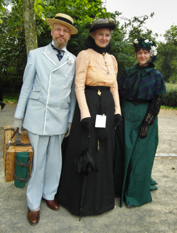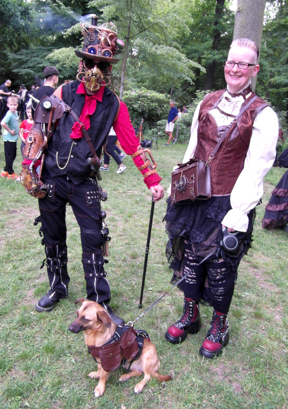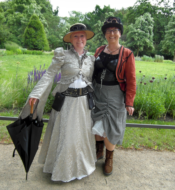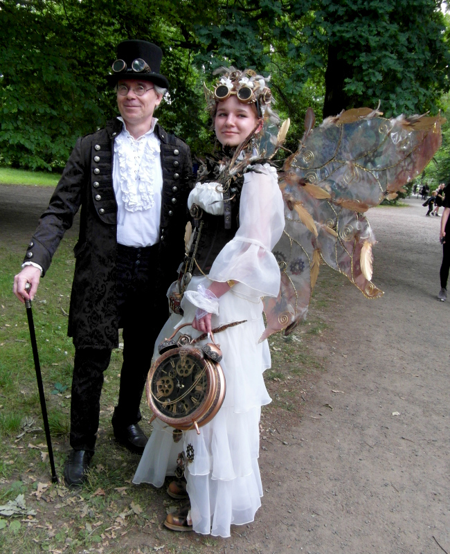 Szombat kora délután sor került a tizenegyedik Steampunk Piknikre is. Bár nem volt olyan látogatott, mint az előző napi Viktoriánus Piknik, mégis sikeresnek tekinthető. A saját készítésű, futurisztikus megjelenésű ruhák mellett büfé is működött, a kínálat az egyszerű falatoktól az igényesen megformált hengeres tortákig terjedt. Itt is voltak bámészkodók, de közel sem annyian, mint tegnap. Az időjárás sem nagyon kedvezett a szabadtéri étkezésnek, sötét felhők érkeztek, engem pont a villamosról leszállva kapott el a zuhé.