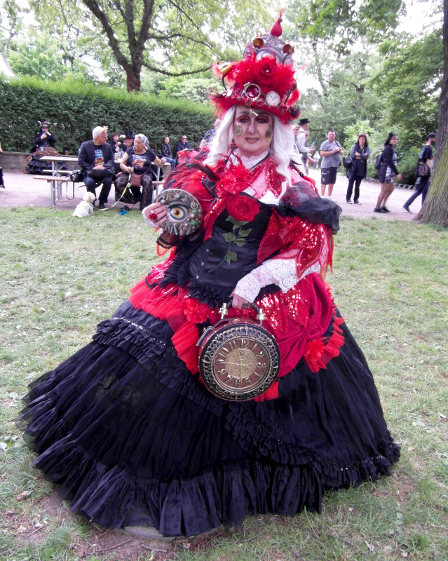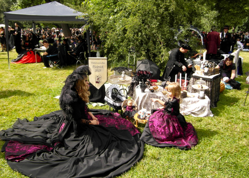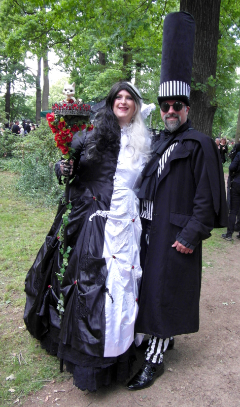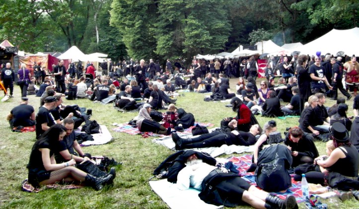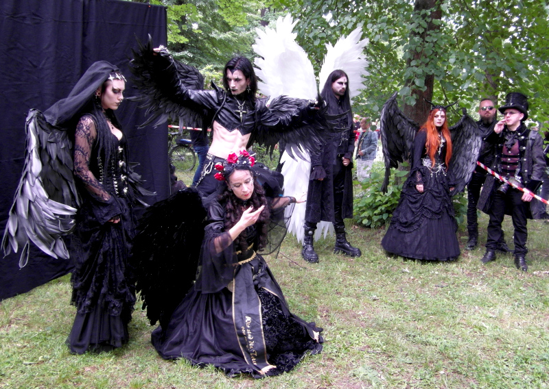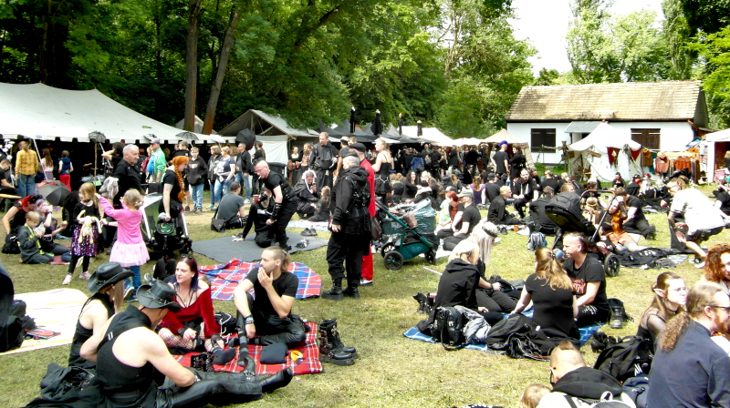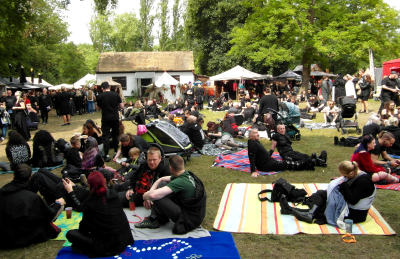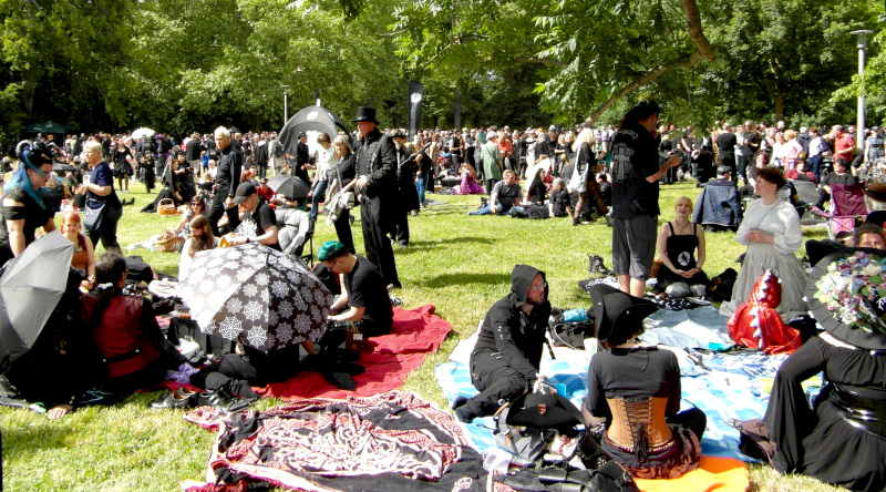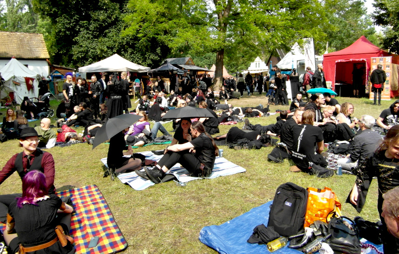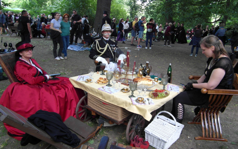 A péntek kora délutánt a Viktoriánus Pikniken kezdtem. A vegyes időjárás ellenére sokan elmentek a Clara Zetkin Parkba, ahol valójában egész idő alatt sütött a nap. A sok érdekes és ötletes öltözetű WGT-látogató mellett sok lipcsei bámészkodó is jelen volt, olyannyira, hogy időnként a kíváncsi helyiek száma meghaladta a jelenlévő gótikusok számát. Ez ismét azt mutatta, hogy az összejövetel rögzített dátum sok olyan lipcsei lakos naptárában is, akik nem hallgatják a szóban forgó zenét. Egész délután pompás viktoriánus ruhákban gyönyörködhettek a parkba látogatók, amiket viselőik nagy gondossággal, kifejezetten erre az alkalomra készítettek. Az időjárás is közreműködött és napsütéssel örvendeztetett meg minket.