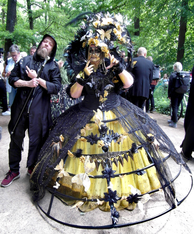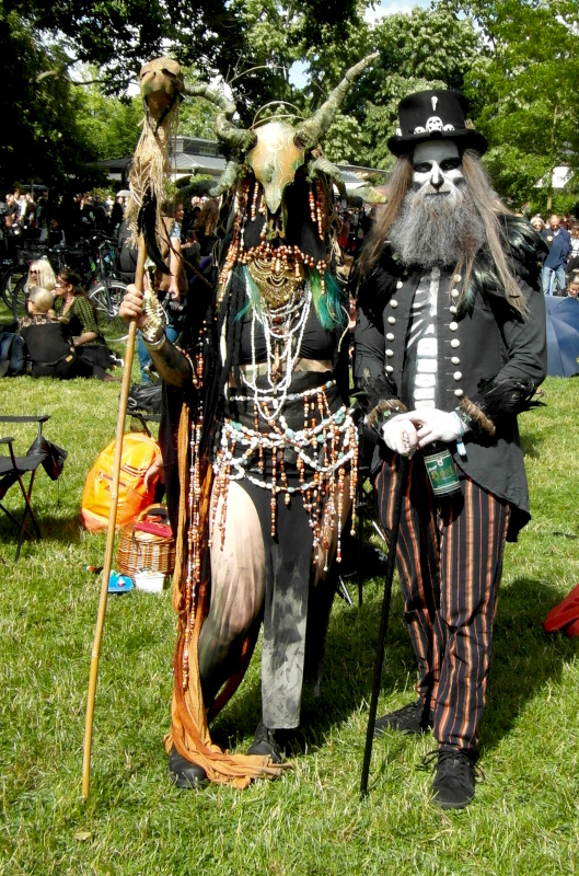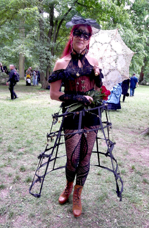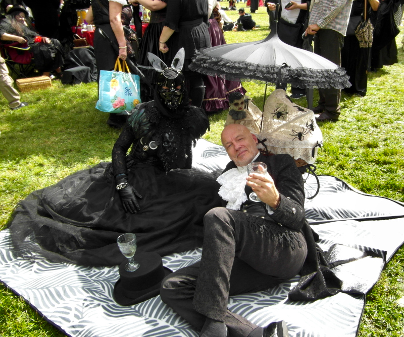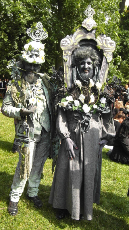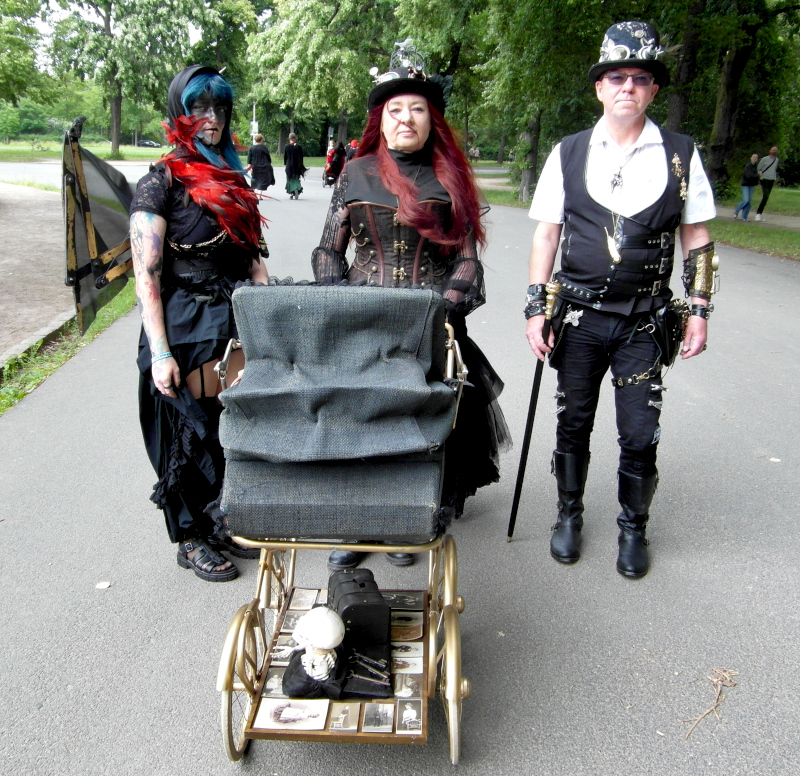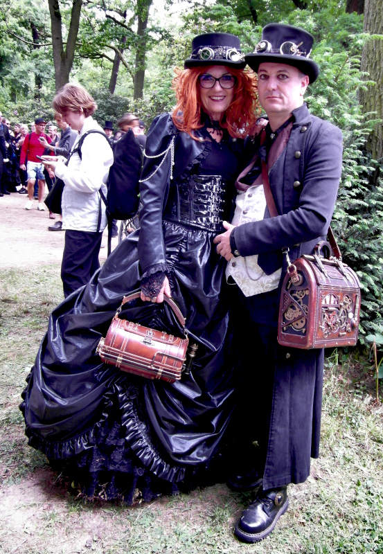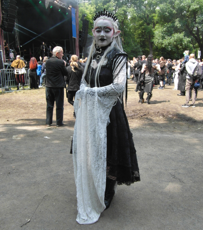 A péntek kora délutánt a Viktoriánus Pikniken kezdtem. A vegyes időjárás ellenére sokan elmentek a Clara Zetkin Parkba, ahol valójában egész idő alatt sütött a nap. A sok érdekes és ötletes öltözetű WGT-látogató mellett sok lipcsei bámészkodó is jelen volt, olyannyira, hogy időnként a kíváncsi helyiek száma meghaladta a jelenlévő gótikusok számát. Ez ismét azt mutatta, hogy az összejövetel rögzített dátum sok olyan lipcsei lakos naptárában is, akik nem hallgatják a szóban forgó zenét. Egész délután pompás viktoriánus ruhákban gyönyörködhettek a parkba látogatók, amiket viselőik nagy gondossággal, kifejezetten erre az alkalomra készítettek. Az időjárás is közreműködött és napsütéssel örvendeztetett meg minket.