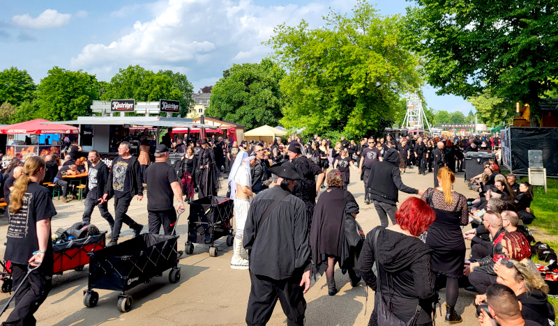 Idén is több mint 20.000 gótikus rajongó érkezett Lipcsébe, hogy pünkösdkor birtokba vegyék azt. Sajnos ebben az évben ugyanakkor zajlott a Városi fesztivál is, így nem csak feketébe öltözötteket lehetett látni szerte a városban. A fekete színtér legnagyobb összejövetele egész Lipcsére kiterjedően a szcéna legkülönbözőbb stílusaiból változatos zenei műsorral, de érdekes kísérőprogrammal is várta a látogatókat. Igen, most is sok WGT látogató szembesült a jól ismert problémával: Mit nézzek meg? A rendezvény öt napja alatt számos programból válogathattunk: koncertektől és kiállításokon át workshopokig, istentiszteletig, temetői gyászterem látogatásig, halottaskocsi találkozóig, piknikelésig, felolvasásokig, szerepjátékokig, középkori vásárig és még sok másig. De ha csak lazítani akartál, egyszerűen leülhettél bárhol és nézhetted a többi látogatót.