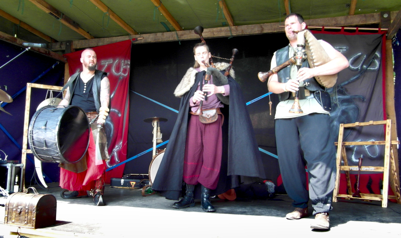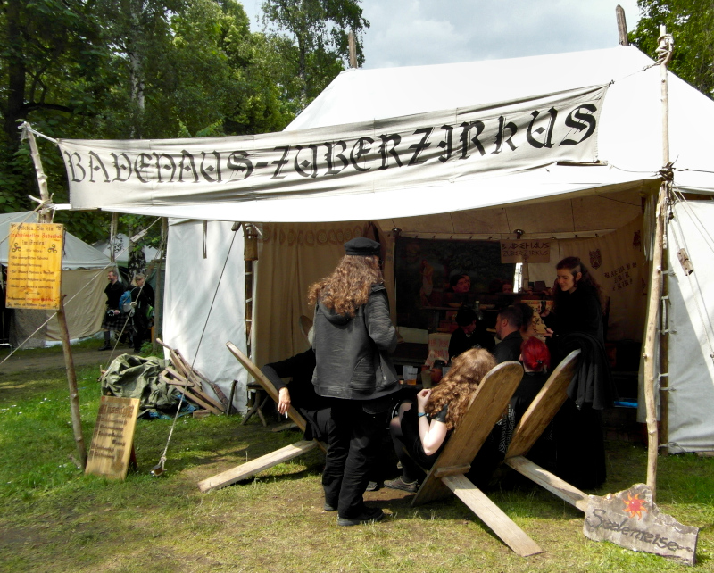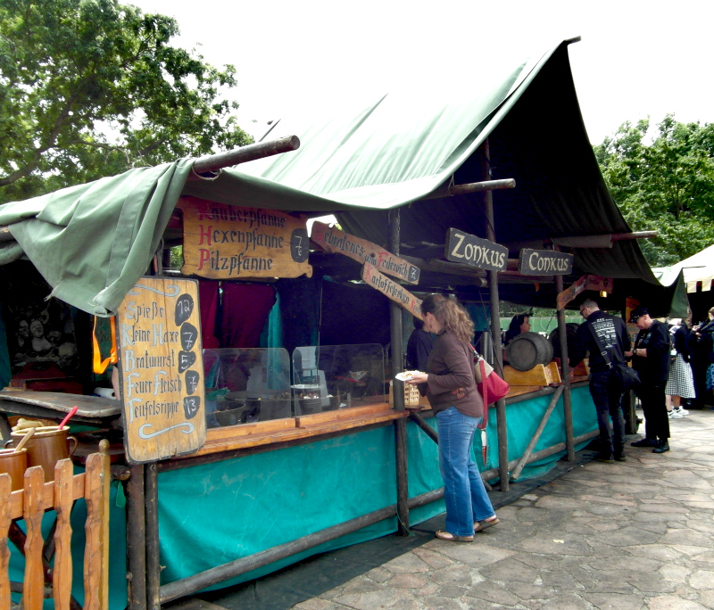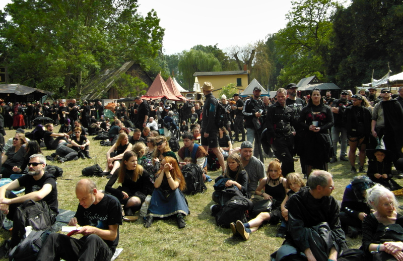 Eljött a nem várt utolsó nap is, a hétfő kora délutánt én a Heidnisches Dorf-ban, azaz a pogányfaluban indítottam. Idén először új módszert alakítottak ki a beengedésre, így minden simán ment. Régen azért nem így volt, sokszor előfordult, hogy a WGT látogatók nem fértek be, vagy legalábbis őrületes sorbanállás után, ugyanis erre a helyszínre külön jegy megváltásával, úgymond nem fesztiválvendégként is részt lehet venni a programokon: koncertek két színpadon, rengeteg vásárfia, étkezési és italozási lehetőségek rebarbara és mézborokkal, gyerekeknek szalmás középkori játszótér, dézsafürdő… várta az oda látogatókat.