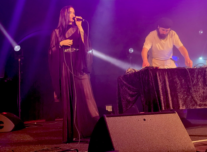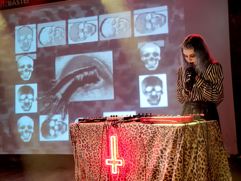 Átnéztem a Moritzbastei-ba is, ahol akkora volt a tömeg, hogy a passom nélkül nem biztos, hogy bejutok vagy legalábbis nem a 2. sorba. A Night In Athens, azaz a görög Tina Boleti dark synth szólóprojektje váratlanul indult a 2020-as karantén alatt Kelet Londonban. A fellépés egy hátborzongatóan félresikerült gótikus mesére emlékeztetett: az énekesnő rémisztő arckifejezései, félelmetes sikolyai, nyugtalanító énekhangja és kísérteties dallamai feltárták az emberi lét komor szegleteit. Olyan “gyászdalokat” hallhattunk, mint a „Cold“, „Pressure“, vagy a „Metropolis” és persze nem lehetett más az utolsó szám, mint a „Words Unspoken“.