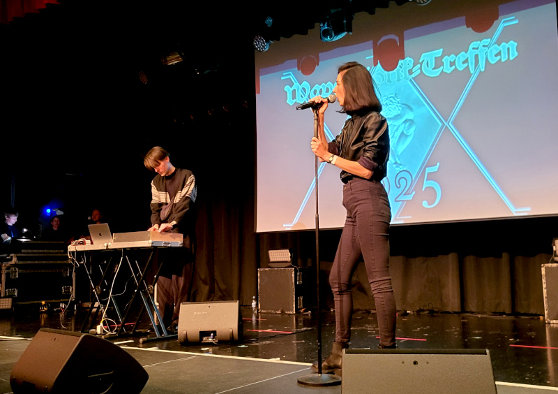 Vissza a kupolaterembe, ahol izgatottan vártam a spanyol Darkways-t, tulajdonképpen miattuk hallgattam végig az előző két együttest is. A barcelonai darkwave zenekar ötvözte a rock hatásait a szintielemekkel és a posztpunk szenvedélyével, így teremtve egy magával ragadó hangulatot, ahol a darkwave érzékenység találkozott a vintage elektronikus hangzásvilággal. Abban a pillanatban, ahogy meghallottam őket, teljesen rájuk kattantam, engem teljesen elvarázsoltak. Máris erősen kezdtek, sorra jöttek a slágerek: „Shadowdancer“, „Lies“, „Dark & Light“, a közönség is a csapattal volt, sokan ismerték a számokat, együtt énekeltünk, tapsoltunk, táncoltunk a trióval. Az énekes viccesen mondta, hogy most következik a banda leghíresebb száma, ami attól az, mert nem ők írták és rögtön bele is csaptak a Cure „Forest“-jébe. Szuper koncert volt, a rajongók alig akarták elengedni kedvencüket.