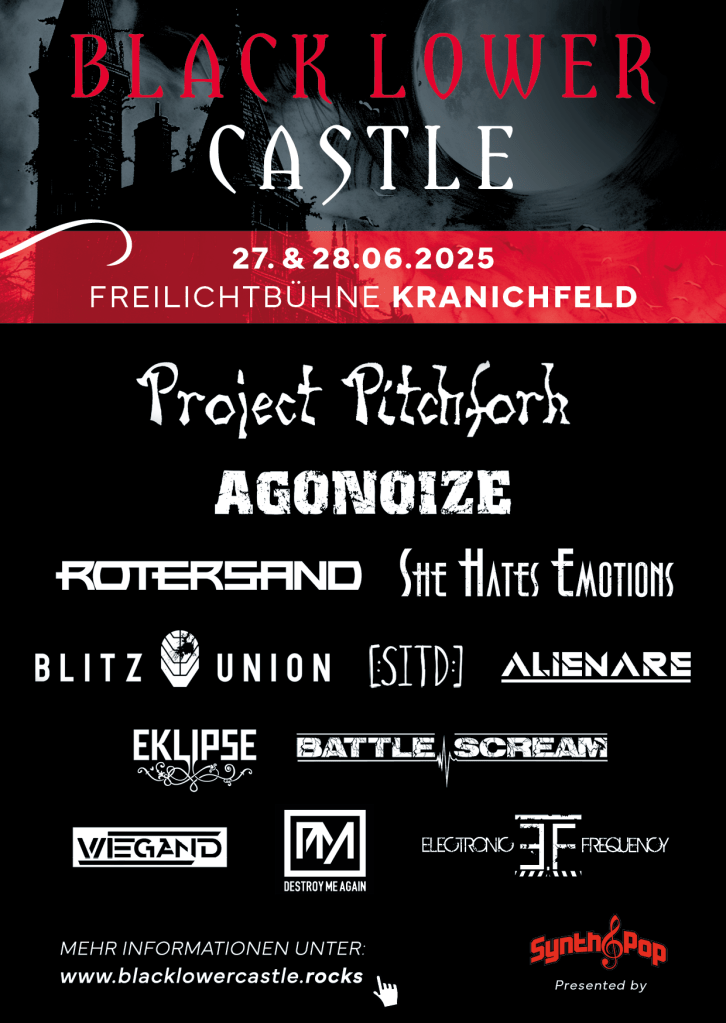 Niederburg idilli helyén, a Jena és Erfurt között lévő Kranichfeld keleti külvárosában, az Ilm-folyó medre fölötti nyúlványon rendezik meg június utolsó hétvégéjén a Black Lower Castle fesztivált, ahol fellép a Project Pitchfork, Agonoize, Stahlzeit, Rotersand, She Hates Emotions, Blitz Union, SITD, Alienare, Wiegand, Electronic Frequency, csak hogy a nagyobbakat említsük. A kastély 1147 körül épült és egy rendkívül nagy külső várral, egy kis középkori fővárral és több toronnyal, valamint nagy sáncokkal és árkokkal rendelkezik. A kastélyban egy darab szabadtéri színpad található koncertek, szabadtéri rendezvények és egyéb fesztiválok számára. A jegyár magában foglalja a kemping használatát is.