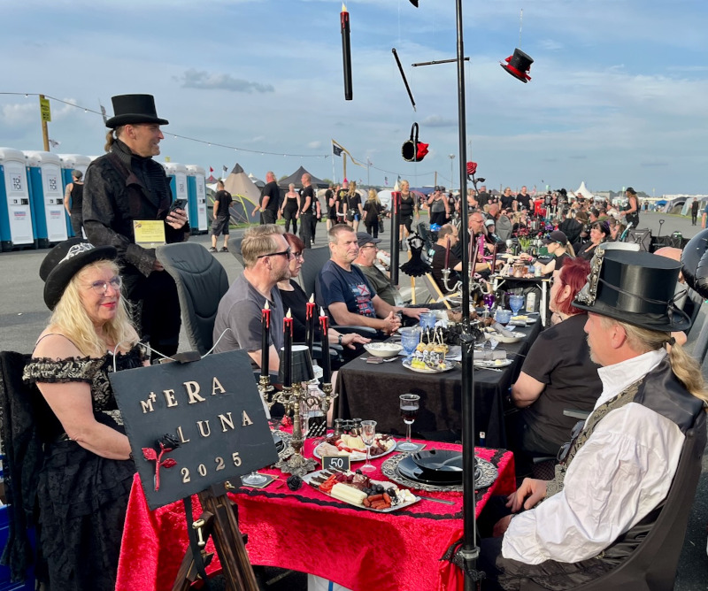 Negyed évszázadnyi M’era Luna és a fekete színtér úgy ünnepelt, mintha nem lenne holnap. Idén először reggeli futáson és jógán is részt lehetett venni, valamint a közösség szervezett a 0. nap estéjén egy Dark Dinner nevezetű vacsorát, ahol a kifutópálya kellős közepén 70 asztal volt gyönyörűen megterítve, a résztvevők csinos kis kosárkákban vitték magukkal az ételt. A Hildesheim-Drispenstedt repülőtér 25. alkalommal változott át egy másik világgá: fekete, bőr, bársony és csillogó kiegészítők tengerévé. 25.000 látogató utazott Európa minden tájáról, hogy részt vegyen ezen a különleges családi találkozón. Azok, akik ide érkeztek, elmerültek a zenében, a közösségben és abban az érzésben, hogy pár napra a saját kis városuk részévé válhatnak. Tündék, angyalok, ördögök, harcosok és viktoriánusok sétáltak egymás mellett a középkori piacon. A M’era Luna ismét bebizonyította, hogy sokkal több, mint egy fesztivál. Ez egy érzés. Egy ígéret. És sokak számára a világ legszebb helye, legalábbis egy hosszú hétvégére. A következő 25 évre! Mi biztosan ott leszünk!