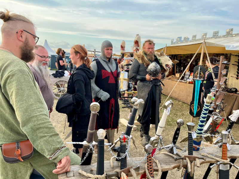 Vissza a másik színpadhoz, ahol a német medievális elektró zenekar, a lovagi jelmezben nyomuló Heimataerde középkori hangszerekkel ötvözve hozta el az EBM, az elektró és az indusztriált. Kemény ütemeikkel és provokatív dalszövegeikkel egy disztópikus jövőről meséltek nekünk. Energikus előadásaik magával ragadták a középkori rock szerelmeseit, legnagyobb tombolás persze a „Gib Mir“-re volt.