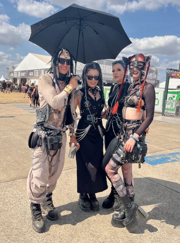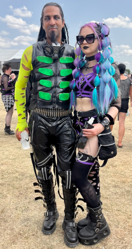 A hatalmas egók visszatértek! Két év szünet, zenekari átrendeződés után a darkwave Massive Ego kvartettként tért vissza a kisszínpadra. Az énekes Marc korábban egyik napról a másikra visszavonult minden tevékenységétől, sőt az internetezéstől is, miután 2022-ben pszichés összeomlást szenvedett. De most új tűzzel léptek színpadra, Marc lefogyott, levágatta a haját és a megszokott Miki egér fejet műanyag fülekkel pótolta. Fura volt, hogy a Blutengeles Chris Pohl is aznap lépett fel, a „For The Blood In Your Veins” közben viszont nem ment fel együtt énekelni a közös számukat, de volt „I Idolize You“, „My Religion Is Dark” és „Monsters“.