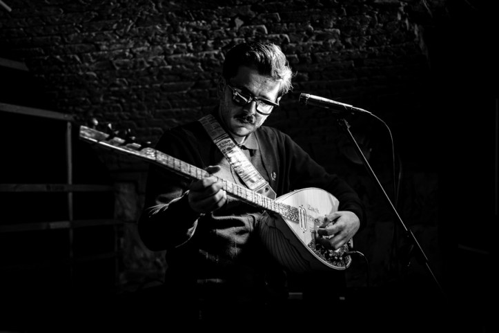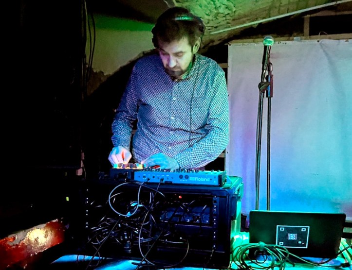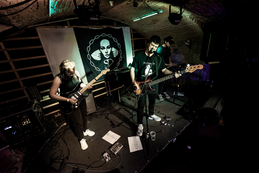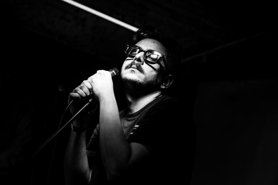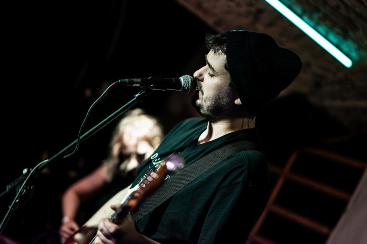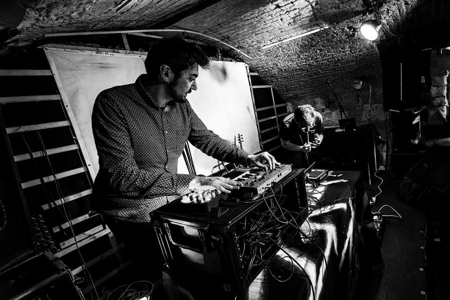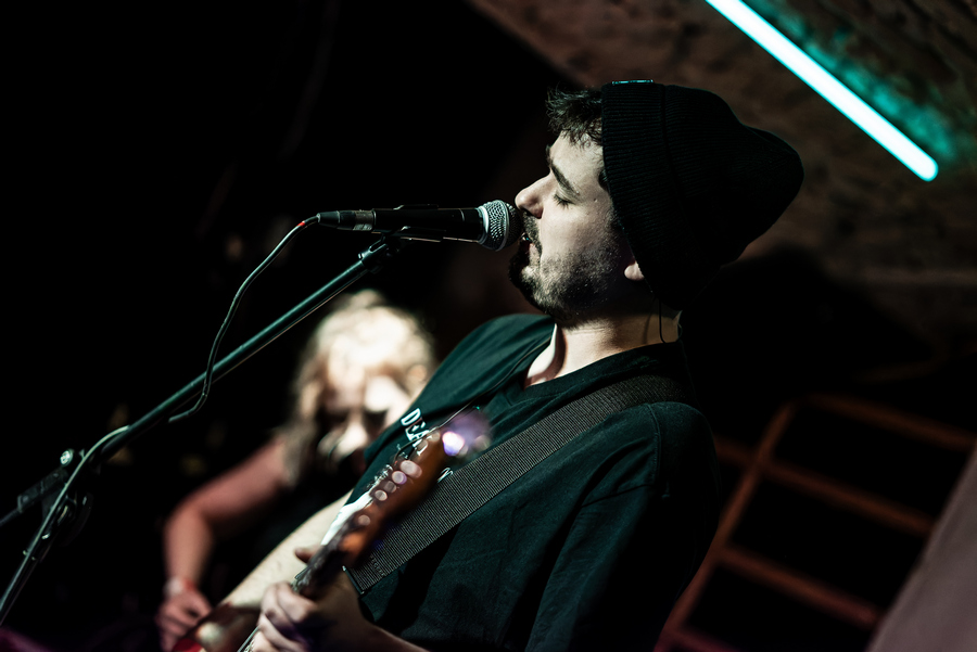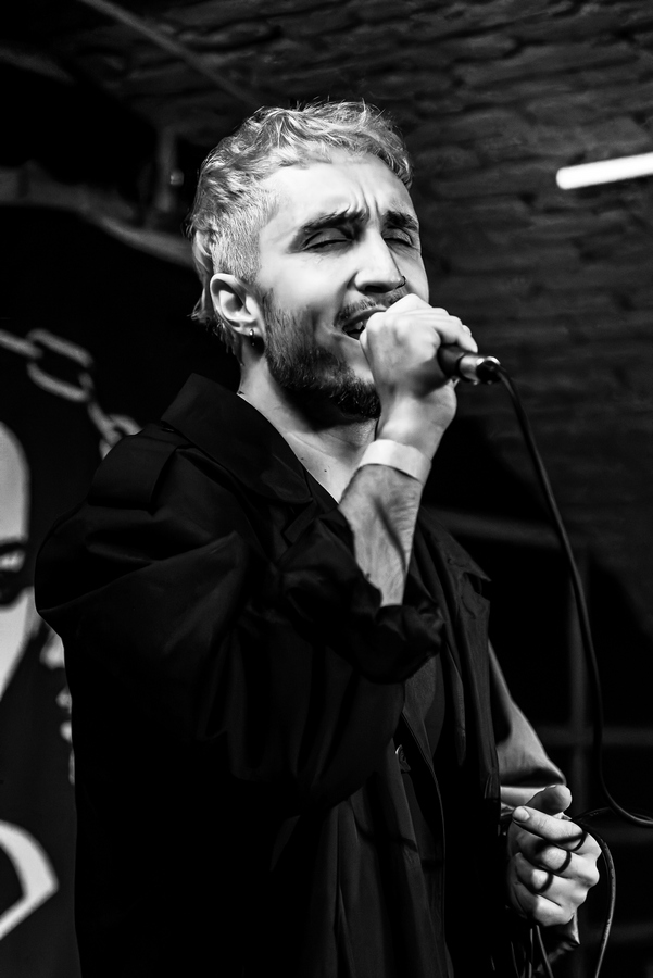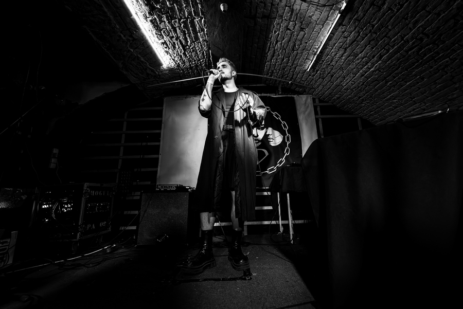 Rövid átszerelés után jött is a Separated Lamb, azaz Engel Simon projektje. Legutóbb a Kontravoid előzenekaraként láttuk őt a Gólyában még tavaly ősszel, most pedig kiszőkített hajjal állt ki, fekete atlétában, térdgatyában, ballonkabátban és bakancsban – egyszerre volt civil és tudatosan megkomponált a látvány. A koncert nagy részében végig csukva volt a szeme, mintha nem is kifelé, hanem befelé játszana, azért néha-néha kinyitotta, hogy ott vagyunk -e még. 😀