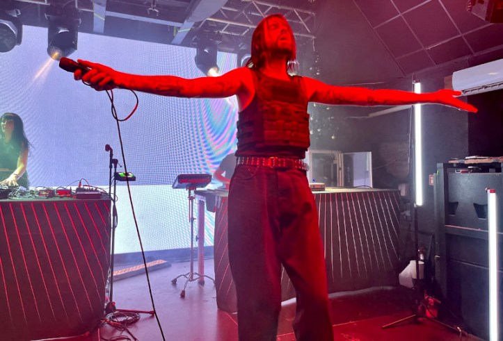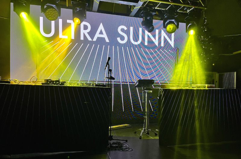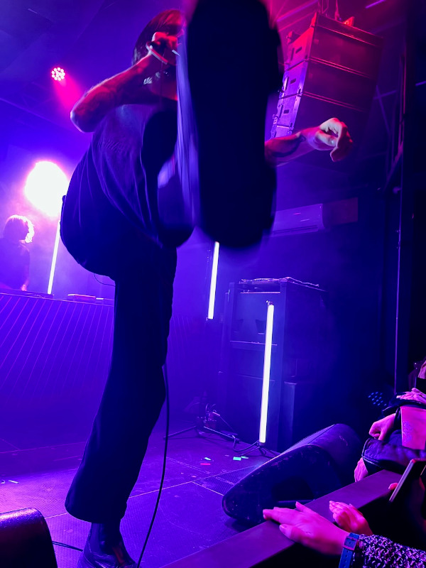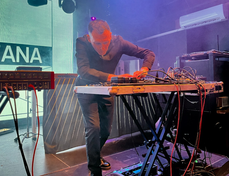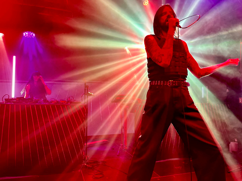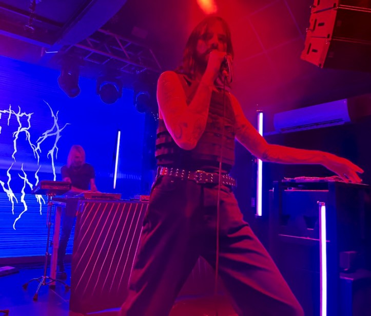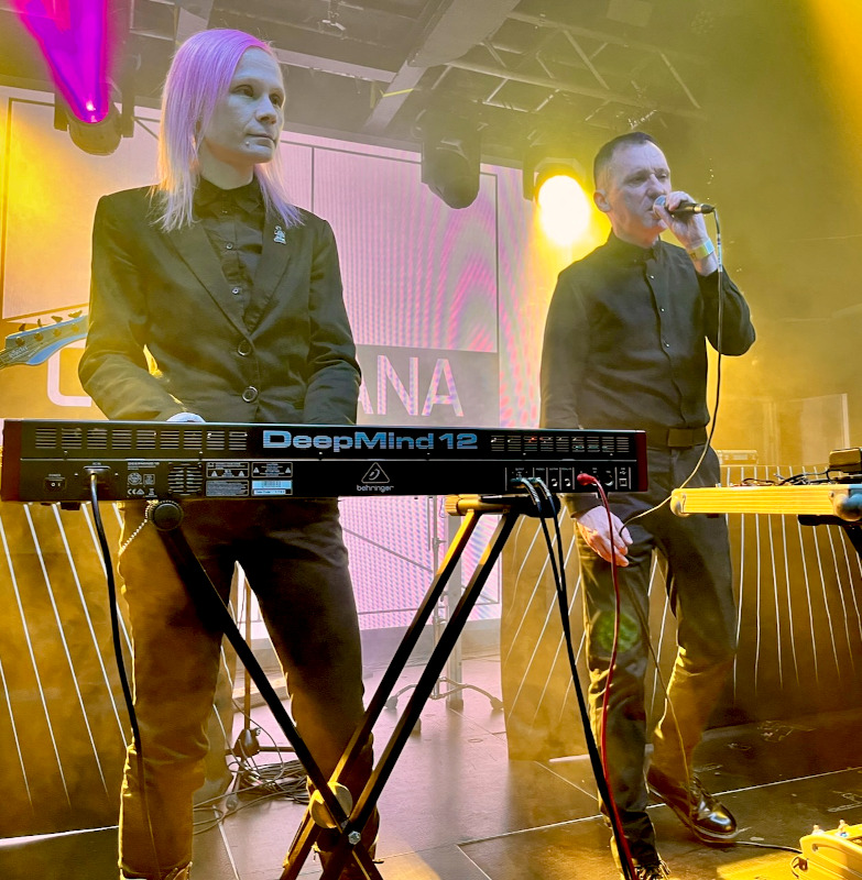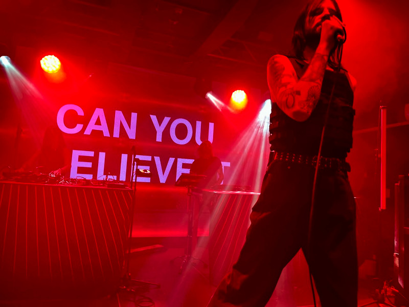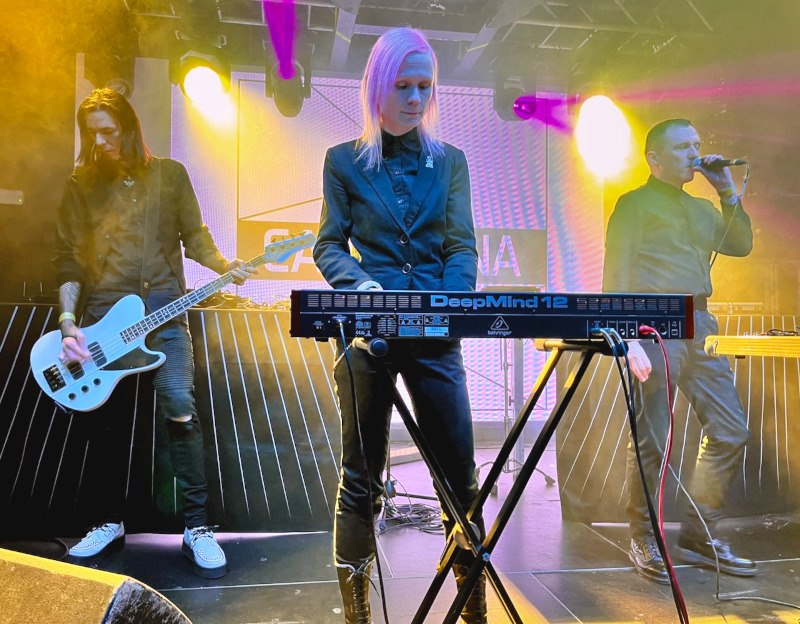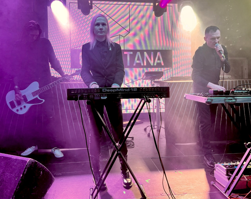 Az Ultra Sunn koncertje feszesen felépített, vizuálisan is erős élményt nyújtott, ahol a dalok sorrendje és a kivetítőn megjelenő elemek szinte egy külön dramaturgiát alkottak. Az est egy hatásos intróval indult, amely azonnal megalapozta a sötét, mégis energikus hangulatot, majd sorban érkezett a „The Speed” és a „Young Foxes“. Ezután rövid „köszönöm” hangzott el a színpadról, de a lendület egy pillanatra sem tört meg. Az elegánsan visszafogott billentyűs Gaelle Souflet, az énekes Sam Huge és az élő koncerttag, Alexis Andrigo továbbra is kompromisszummentes, dübörgő EBM hozzáállást tanúsított.