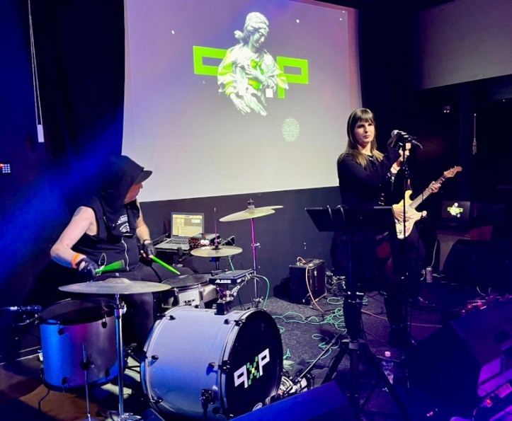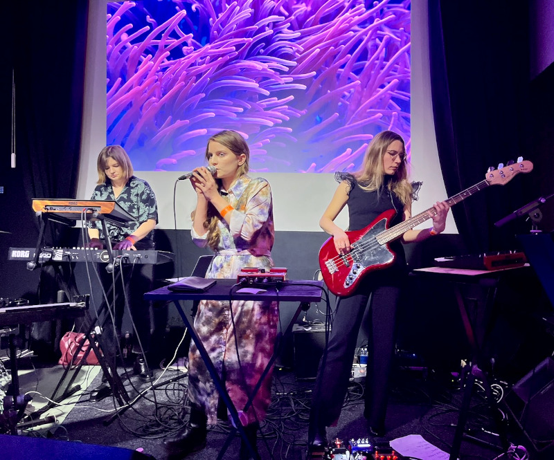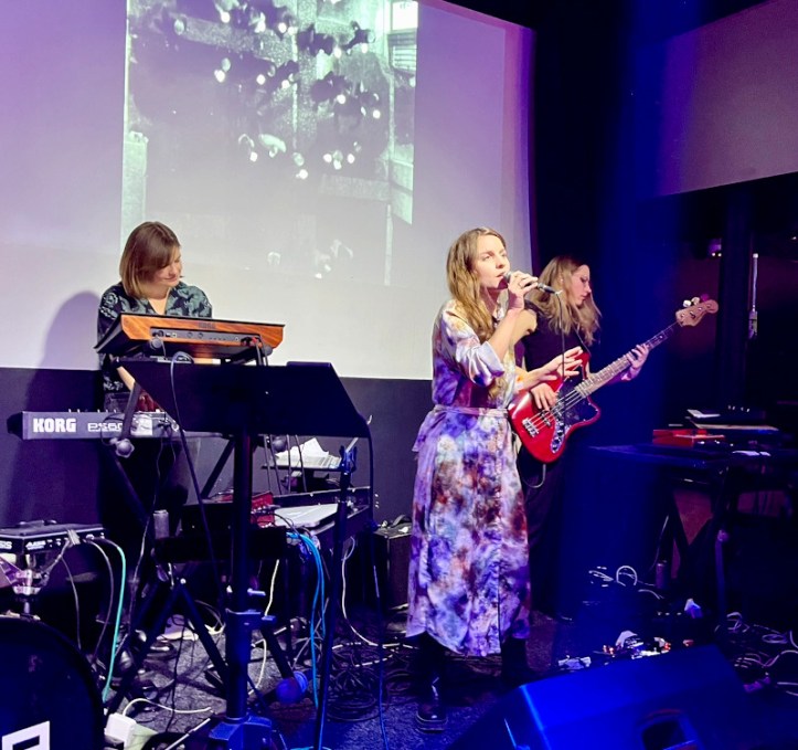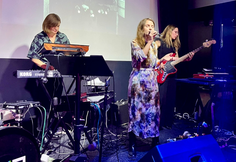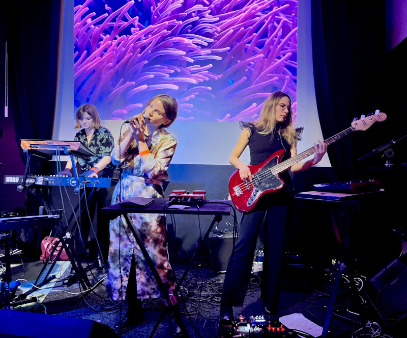 A masszív, súlyos témák mellett megjelentek a meditatívabb, atmoszférikus részek, amelyek egyszerre voltak nyugtalanítóak és felemelőek. A háttérvetítések és a mozgó képi elemek (pl. lassan hullámzó grafikus animációk, metróalagút-felvételek) „kiterjesztették” a koncertet, így nemcsak hangügyileg, hanem vizuálisan is elmerülhetett a közönség a dalok világában. A pécsi hölgytrió utcazenélésből nőtte ki magát, az elektronikus dark-popot ötvözték a finoman ívelt dallamokkal és a mély basszusokkal, gyakran lassú, álomszerű építkezéssel, időnként kifejezetten hipnotikus hatást keltve. A csapat már az első percekben magába szippantotta a közönséget a szeptemberi debütáló kislemez dalaival (kedvencem az „I Want” lett).