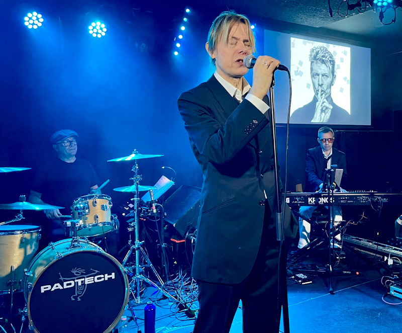 A héttagúvá vált banda a zenész halálának pont a 10. évfordulóján adta a koncertet, a tagok megjelenése már önmagában Bowie-univerzumot idézett: az énekes ezüst cipőben, fekete öltönyben, fehér ingben és fekete nyakkendőben állt a színpadon, a basszusgitáros szegecses inget és szegecses cipőt viselt, a vokalista lány fekete bőrhatású nadrágban, fekete felsőben és fehér zakóban érkezett. A gitáros–szintis pasin surda kalap és csillogó flitteres zakó volt, a másik, szakállas gitáros vadászkalapját egy madártoll díszítette. A dobos jampi sapkát hordott, a dob pedig nem volt kihangosítva – de a kis teremben erre nem is volt szükség. A napszemüveges szintis fehér ingben és nadrágban, fekete nyakkendővel és zakóval tette teljessé a látványt.
