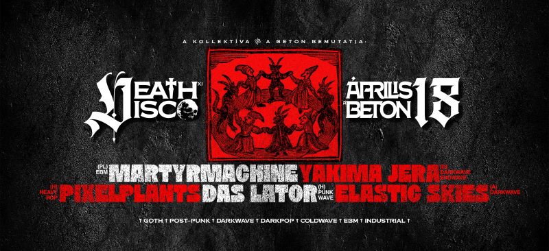 Először lép fel Győrben az elektronikus pop keményebb és árnyékosabb oldalán kalandozó pécsi Pixelplants (H). Teljesen megújult formátumban tért vissza az A BETON színpadára a punk és az újhullám frontális ütközéséből született Das Lator (H). Első magyarországi koncertjére készül a bajor erdők árnyai és az éjszakai neonfény ihlette darkwave/endwave Yakima Jera (D). Szintén Győrben mutatkozik be a magyar közönségnek a ’80-as évek undergroundjából merítő bécsi Elastic Skies, amely a post-punk, darkwave és synthpop visszhangokat vegyíti a kortárs indie elektronikával. Végül a BETON brutális díszletei között demonstrálja az autentikus testzene nyers, klubromboló erejét a Łódź-i EBM duó Martyrmachine (PL).
