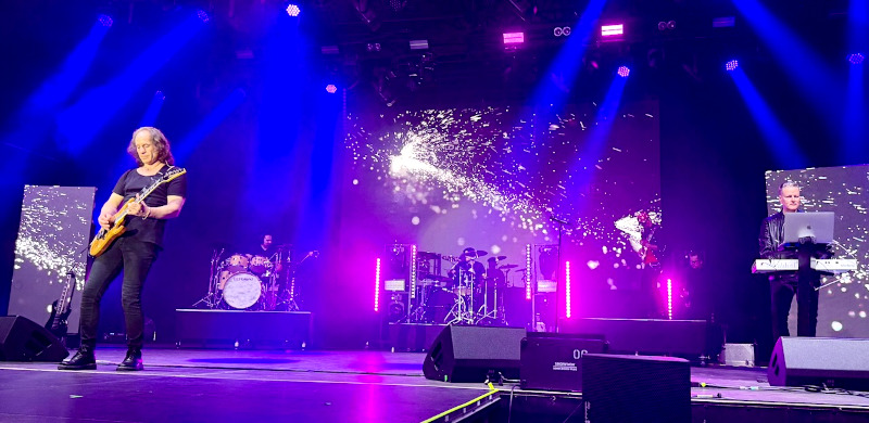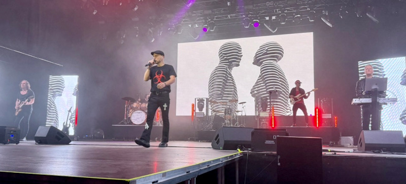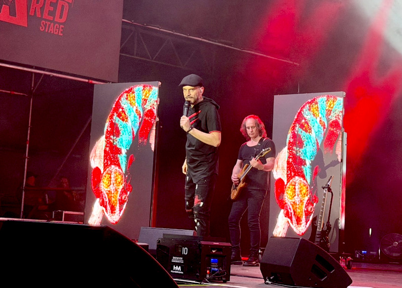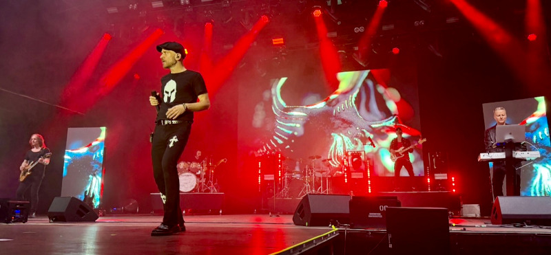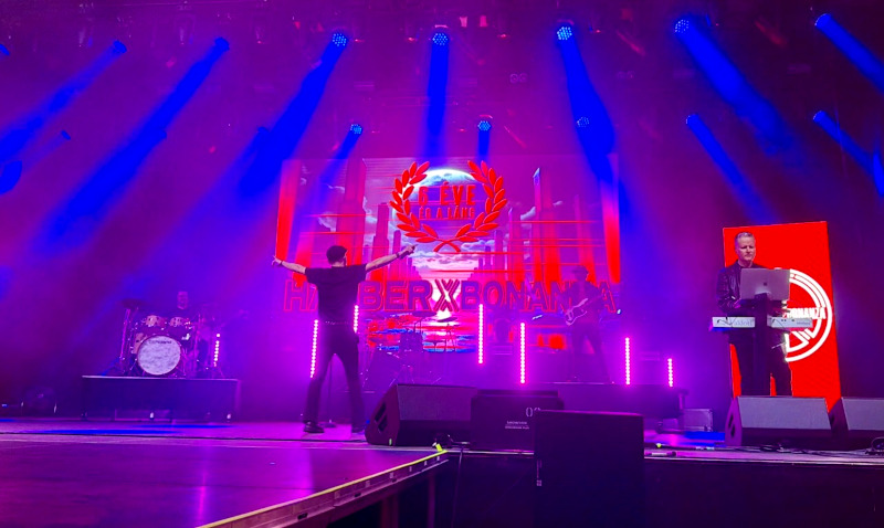 Két perccel 20:00 előtt a zenekar tagjai sorban színpadra léptek: először a dobos, majd a basszusgitáros szívet formáló kezekkel. Megjelent Zsolti is, aki csókot dobott a közönségnek, felnyitotta a laptopját és indult is a Bonanza Live Banzai-os „Introduzione“. A tömeg ujjongása szinte azonnal betöltötte a teret. Bár nem volt soha rádiós sláger, mégis kultikus státusza van a dalnak, sokak számára a rituális nyitást, az „időugrás kapuját” jelentette. Közben a gitáros Laci is bejött, majd elindult a „Tánc” és Attila is megérkezett csupa piros-feketében és az elmaradhatatlan sapi-napszemcsi kombóban. Köszöntötte a közönséget és egy időutazásra invitált mindenkit múlt és jelen között, ahol csak a dalok ereje és szeretete számított, majd felcsendült az új számuk, a „Feltámadás“. Aztán beindult a nosztalgia-vonat, de nem ám lassan pöfögve, hanem turbó fokozaton: visszatértünk a régmúlt egyik nagy kedvencéhez, az „Újra Élsz“-hez, de “nem hagyott el minket, velünk játszott tovább a „Szárnyas Fejvadász” is”, ami alatt olyan hangosan énekelt a közönség, hogy szinte elnyomta az énekhangot.