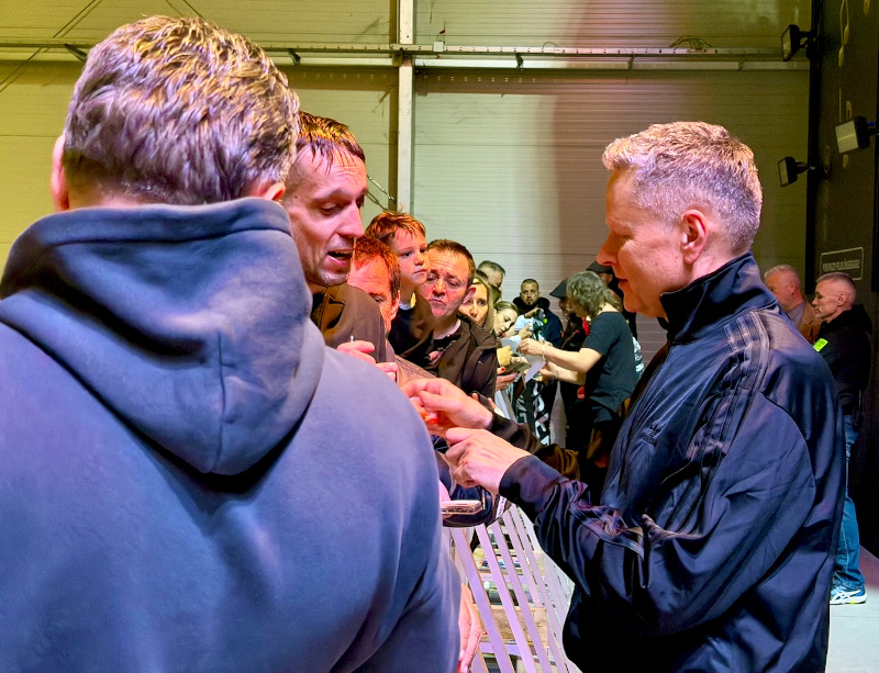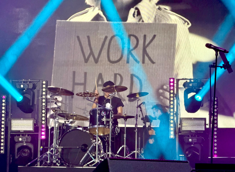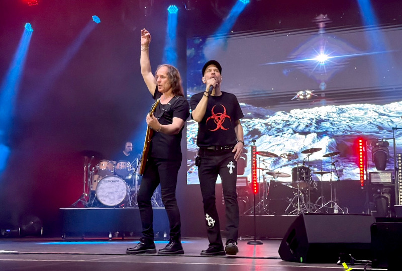 A porondon a dobos mellett volt egy üresen álló dobszerelés is, amit a „Ladies From That House” közben Attila nem félt használni, ledobta a kabátját is, ahogy püfölte a dobokat, majd az első sorhoz lépve lepacsizott a srácokkal. „Lehet, hogy ezeknek a hölgyeknek van egy 101-es szobája?” – jött a felvetés és már meg is szólalt a népszerű „A 101-es Szoba”. Az orwelli vízió ma is hátborzongatóan aktuális, ezt erősítette meg a „Jóslat” is. A „Barátom” alatt, ahogy azt már megszokhattuk Zsolti is énekelt pár sort, ami sok ember arcára elégedett mosolyt csalt. Kétségtelen, zajos világban élünk, de a pillanatnak emlékműve áll: ez volt a „Monumentum”, miközben a kivetítőn koponyák villantak fel. A „Búcsúdal” alatt egy óra pergett a háttérben, mintha csak számolná a hátralévő időt. Végül jött egy örök láng, az „Ősi Láng”, ami méltó lezárása lett volna az estének. Attila megköszönte, hogy jöttünk, persze tudtuk mi, hogy így nem lehet vége, nyilván ráadást kértünk.