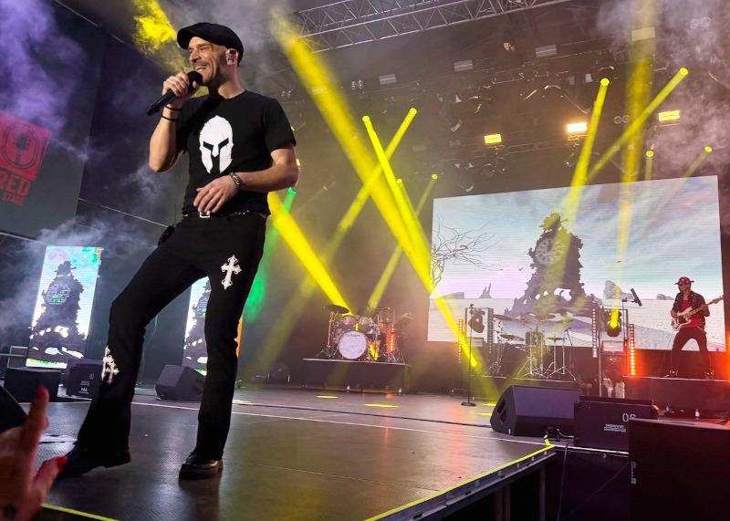 Közben valószínűleg odabent is felment a hőmérséklet: a bőrdzseki már nem tűnt a legpraktikusabb választásnak, így az énekes hamar lehúzta a cipzárt. „Lehet, hogy rossz kedve van ennek a fejvadásznak?”, majd jött is a válasz a „Rosszkedv” képében. Aztán szép lassan lekerült az a bőrdzseki, alatta egy fekete-piros póló villant, a napszemüveg is lecsúszott, miközben szólt a „Térj Vissza”, mi pedig örültünk, hogy a srácok visszavittek minket oda, ahol a legjobb lenni és újra hazataláltunk egy kicsit. Attila elmondta, hogy vannak kimondatlan dolgok, elnyomott vágyak, de most nincs miért fékezni magunkat, törjenek csak elő és „Dörömböljenek azok a Vágyak“. Ő pedig teljesen előrejött a színpad szélére, leguggolt, lepacsizott a rajongókkal és közben bemutatta a zenekart is, a „Nézz Rám” közben egész közel hajolt hozzánk és egy pillanatra mindenkivel felvette a szemkontaktust, pár másodpercig az én szemembe is belenézett, mintha csak nekem énekelt volna. Volt egy másik új szám is, a reményt adó „Főnix“.