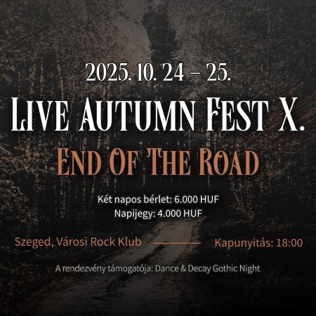 X. Live Autumn Fest – Városi Rock Klub (Szeged), 2025.10.24-25. – ajánló